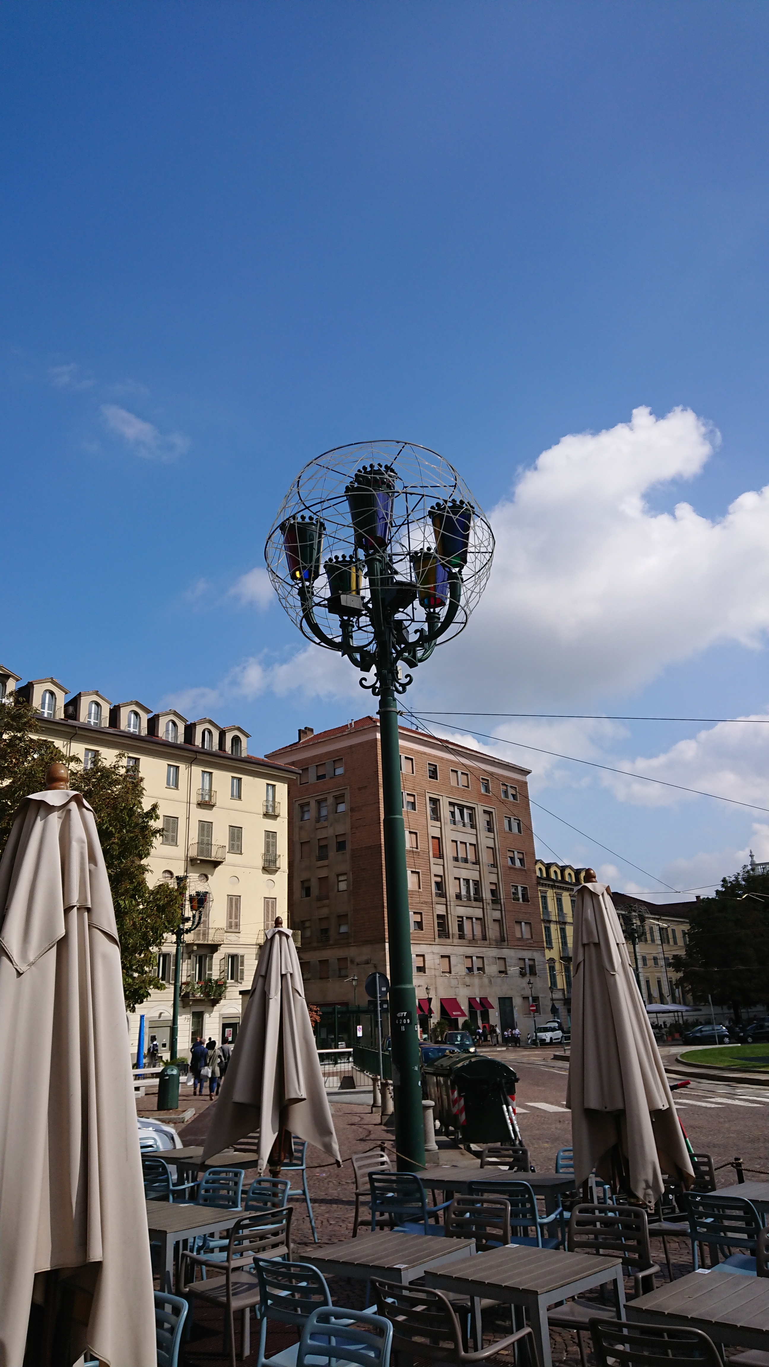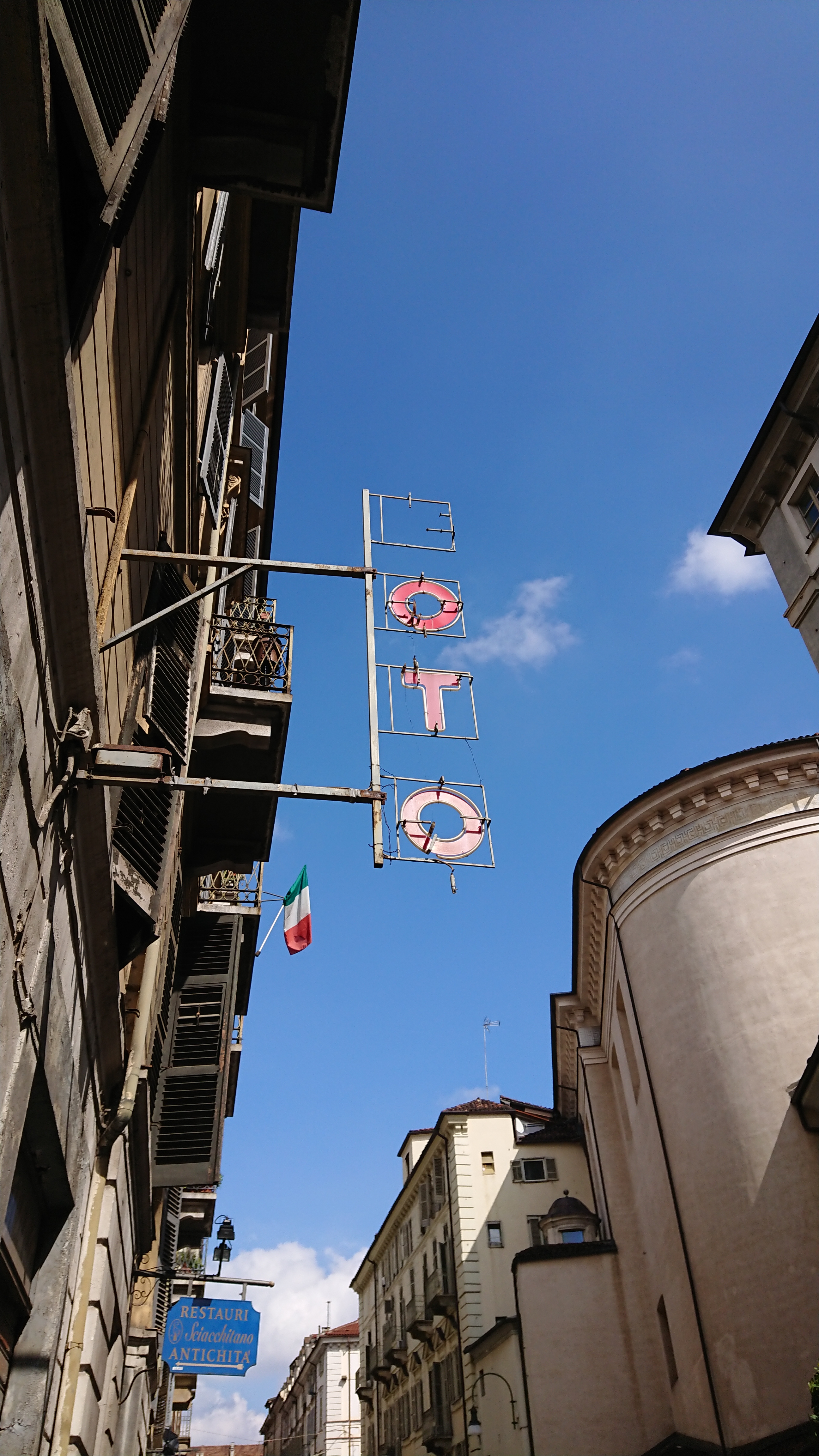 Angefangen hat der Tag mit einem Café und einem grünen grässlichen Getränk für mich (Aqua con menta) nach 2km Fussweg ins Stadt-Innere. Danach haben wir einen Teil der Stadt zu Fuss besichtigt, verschiedenste historische Gebäude von aussen betrachtet und das „Museo nazionale del cinema“ besucht. Wegen Corona sind dort leider die interaktiven Teile der Ausstellung geschlosssen gewesen. Aber auch so hat sich der Besuch gelohnt. Im Innern des Museums schwebt ein gläserner Fahrstuhl an Seilen aufgehängt in die Turmspitze, von wo aus man eine sehr schöne Aussicht über die gesamte Stadt hat. Und auch das Musem an sich ist sehr interessant. Nicht nur in der Stadt, auch im Museums-Inneren haben wir einige Kilometer zurückgelegt und so kam nach dem Besuch kurzzeitig Stress auf, da meine Laune aufgrund grossem Hunger und geschlossenen Restaurants rapide sank. Wir haben dann aber noch ein Lokal für Aperetivo gefunden. Dort habe ich leckeren ungefilterten Weisswein und Brottaschen mit Etwas probiert. Das „Etwas“ hat sich als Kutteln herausgestellt. Die andere Sorte mit der Zuchetti hat uns beiden besser geschmeckt, aber wir haben aufgegessen. Tja, googeln oder überraschen lassen… Nach einem weiteren Spaziergang und guter Laune haben wir den Tag mit Pizza und Rotwein kulinarisch abgeschlossen. Ein Telefonat mit der WG und eines mit Bashos Grosi haben ihn abgerundet.