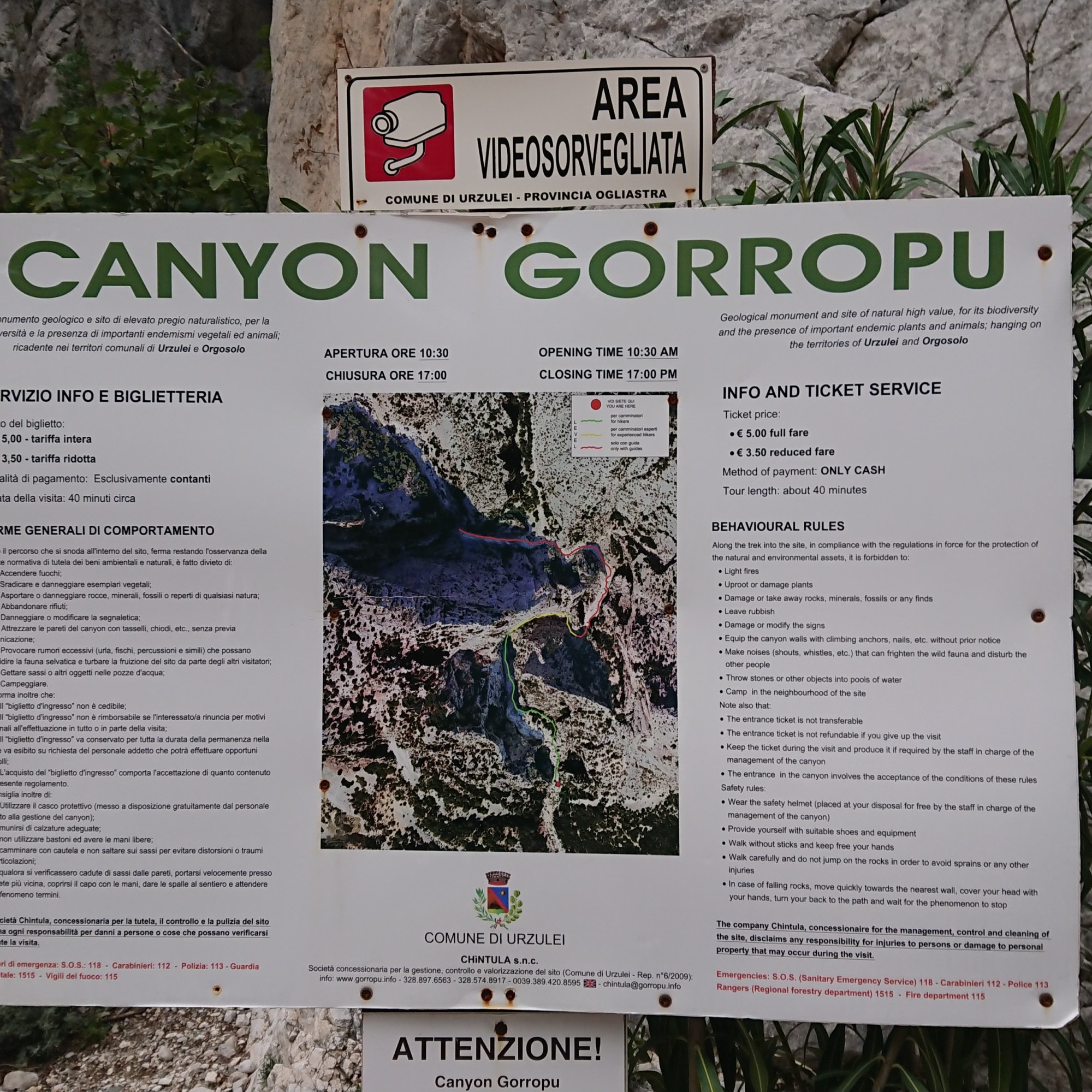 Das Internet hatte Recht. Der Canyon „Gola su Gorropu“ , einer der grössten Europas, hat den Besuch gelohnt! Etwas mehr als 1h Weg vom Parkplatz, der auch in der Nebensaison relativ gefüllt wird und 10 Euro für den Tag kostet, bis zum Eingang des Canyons wo man vermutlich nochmals zahlen sollte. Wir haben das Schild so interpretiert, dass man 5 Euro pP. für eine Führung bezahlen muss und sind am Kassenzelt vorbeimarschiert. Da wir auf dem Parkplatz nur den Tag bezahlt haben, obwohl wir schon die Nacht dort verbrachten, haben wir also 10 statt 30 Euro ausgegeben. Wir finden das einen fairen Preis, für ein Stück Natur ohne Infrastruktur…