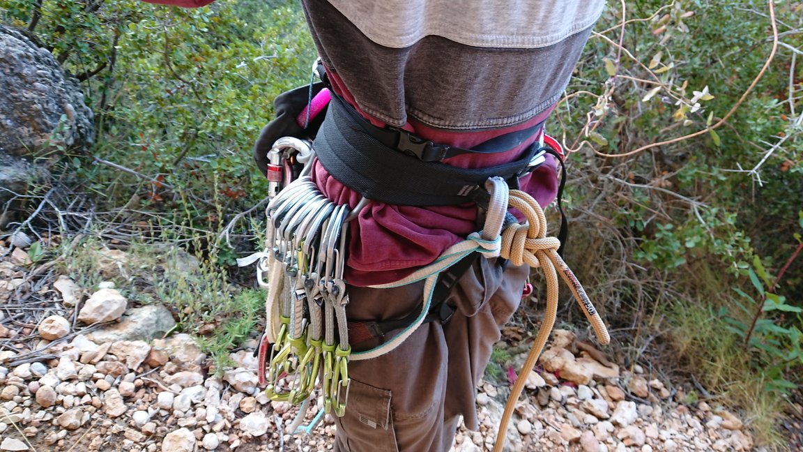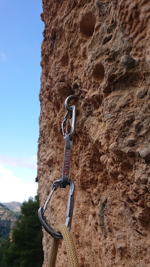 Ein Klettergarten ist ein Ort wo Kletterrouten nebeneinander eingebohrt wurden. Das heisst es wurden einzelne Haken in eine Felswand eingebohrt, oder geklebt. Wir sprechen da von Bohrhaken, Klebehaken, Spits, oder Bolts. Um diese als Sicherung zu verwenden wird ein sogenanntes Express benötigt, um das Seil einzuhängen.