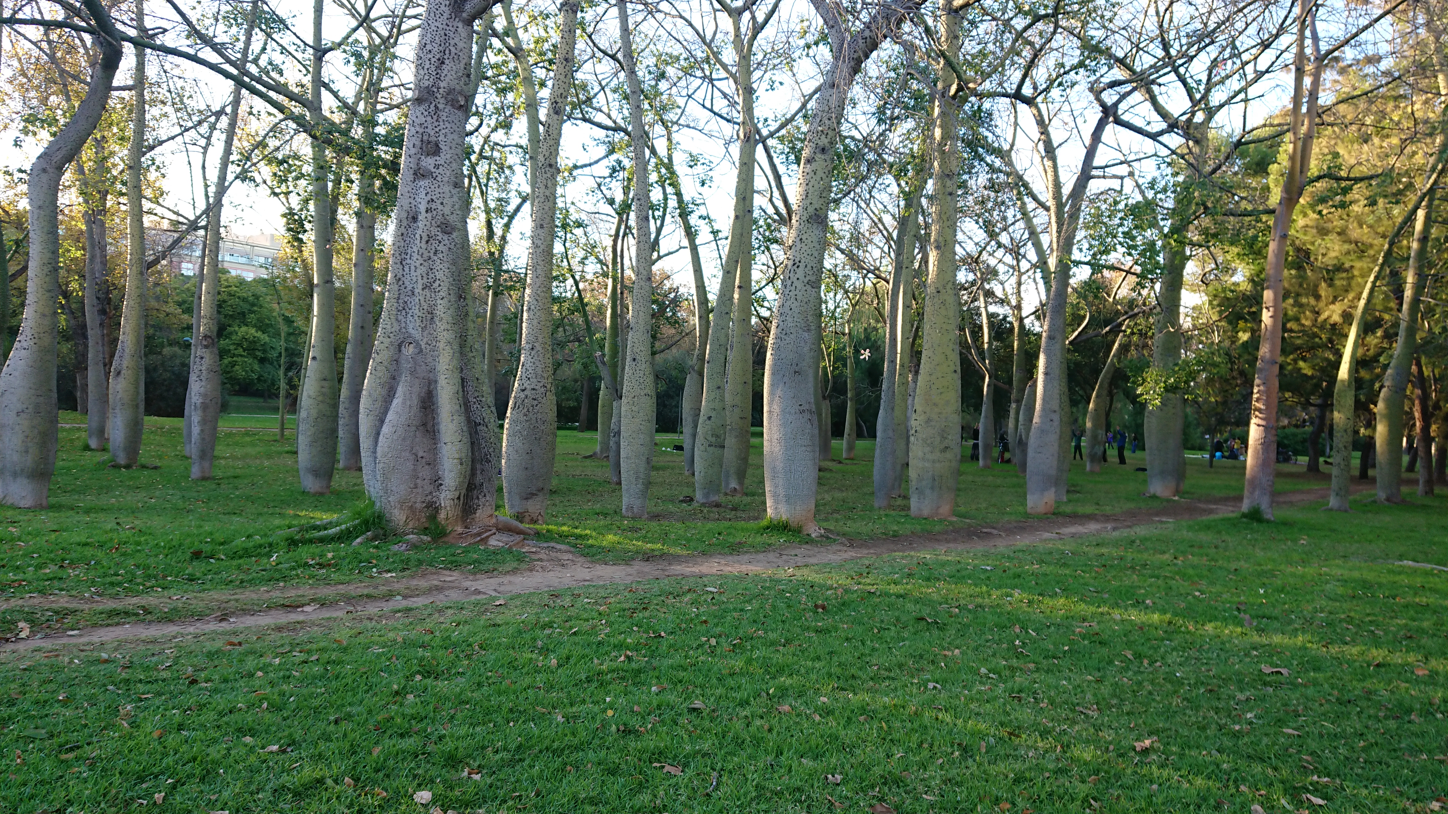 Unser Weg führte dann wieder durch das ehemalige Flussbett, welches flussaufwärts mittlerweile ein wunderschöner Park ist. Dort fanden wir viele spannende Bäume, und wie überall in der Stadt viele Citrusfruchtbäume. Natürlich haben wir probiert!