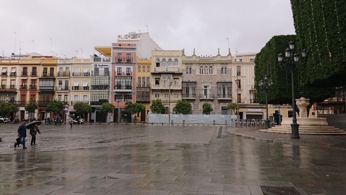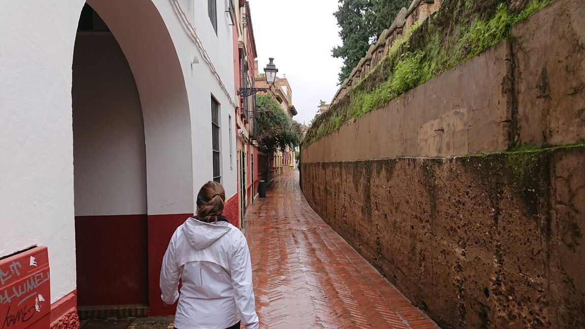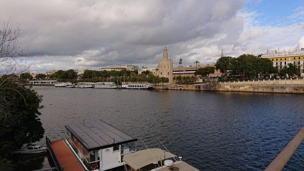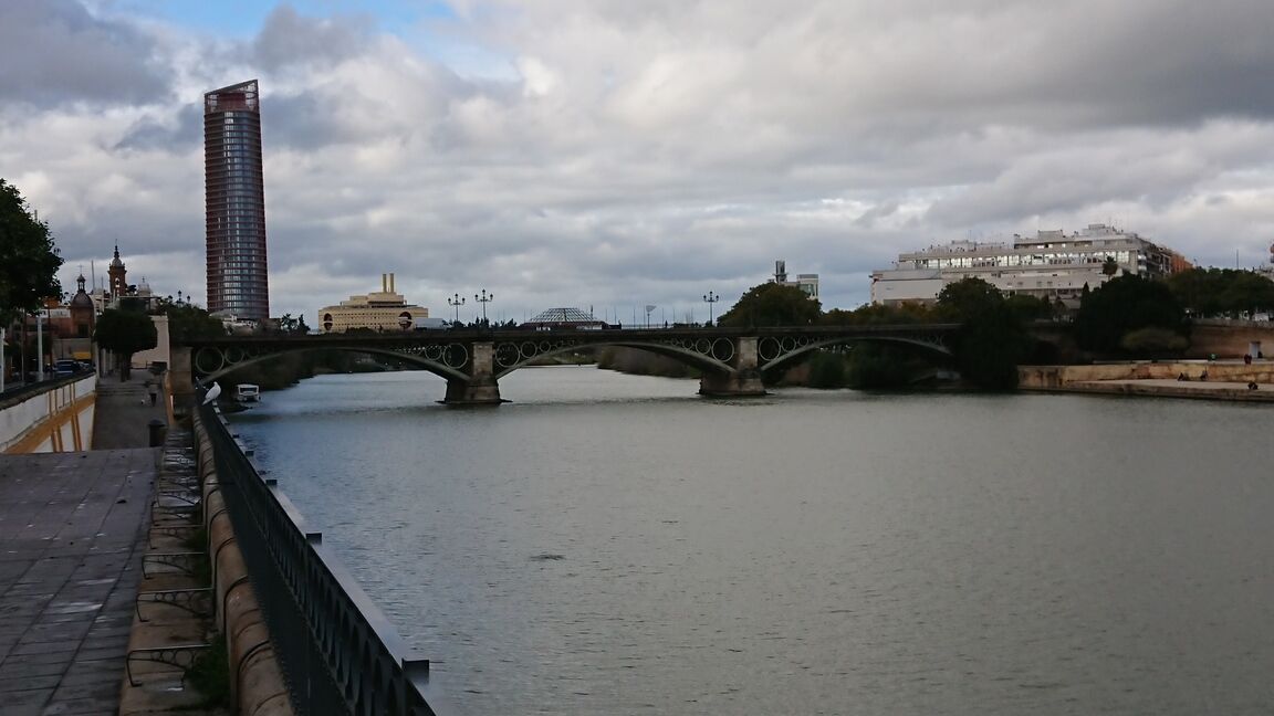Unter Kletter-Entzug fahren wir weiter nach Sevilla. Dort soll es eine Brücke geben, die mit Klettergriffen verschönert worden ist. Da wir von Fribourg die Pont Perolles kennen, sind wir schon mal begeistert: es ist ähnlich wie Hallenklettern nur eben draussen, so sollte der Regen nicht unbedingt ein Problem sein.