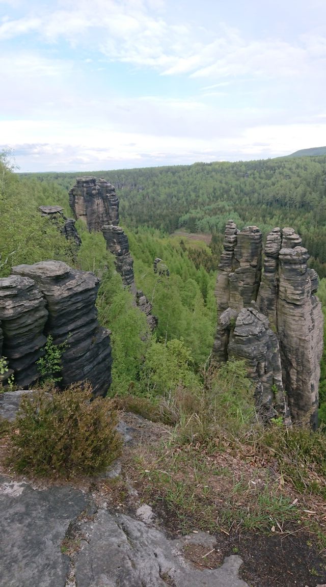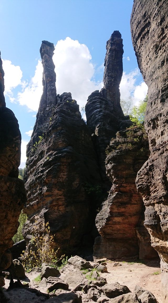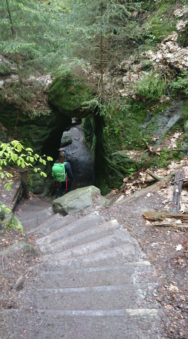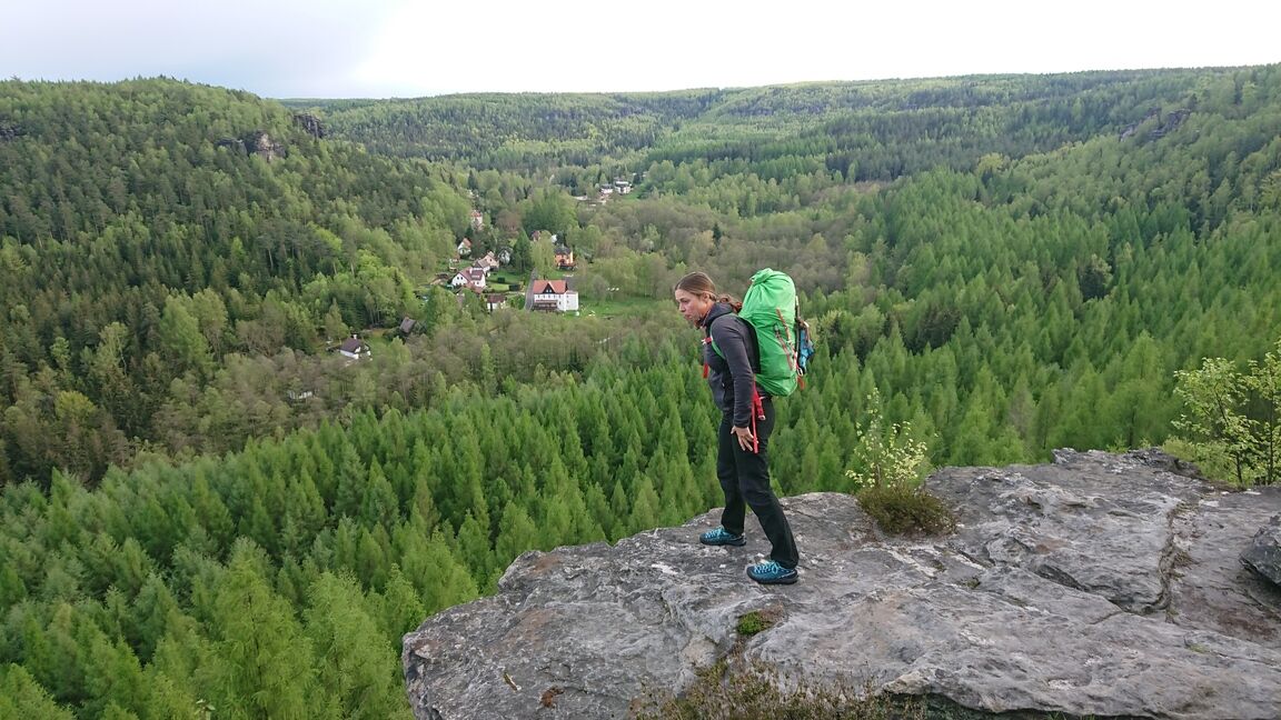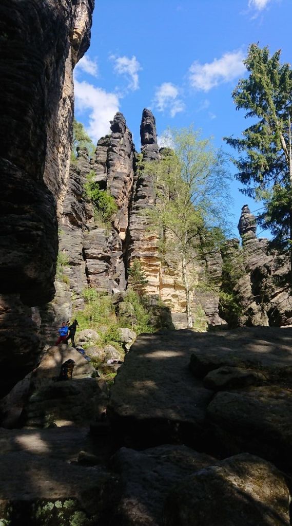 So pilgern wir von wilden Felsformation zu Türmen und weiter durch ein romantisches Tal. Wirklich unglaublich schön. Und wir bekommen Lust zum Klettern und freuen uns auf den nächsten Tag. Einzig übernachten tun wir nicht wie üblich in der sächsischen Schweiz in einer Boofe sondern ganz luxeriös in unseren rollenden 4 Wänden.