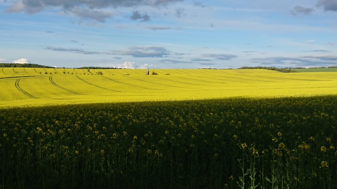 Aber alle die wir getroffen haben, haben unseren Floh im Ohr (ich war mir vorher schon sicher: zumindest vorbeischauen müssen wir, und wenn wir nur wandern weil wir uns zu sehr fürchten 😉 ) aufgebaut. Also sind wir am schönsten Tag durch Rapsfelder an Dresden vorbei ins Bielatal gefahren. Mein Papa, Jan, hatte uns den Tip gegeben.