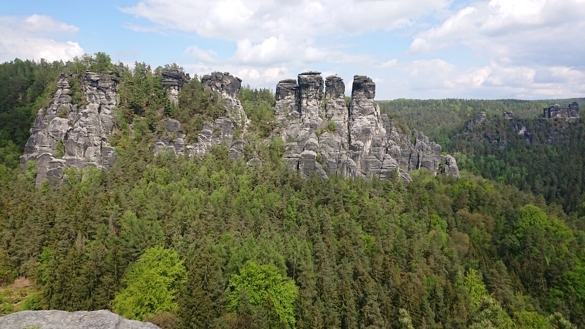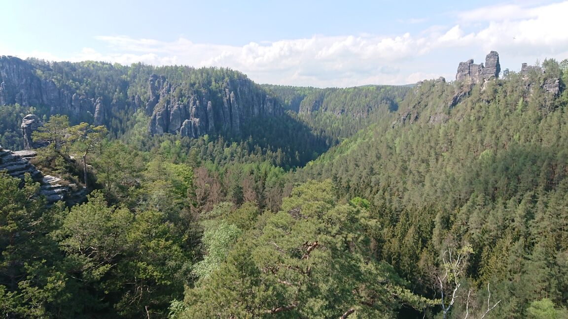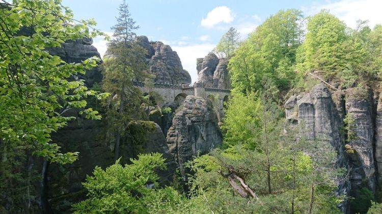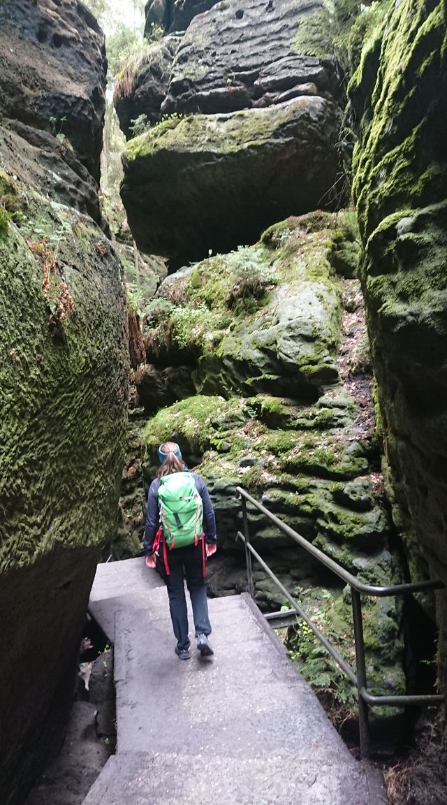 Am nächsten Tag wechseln wir in den Nationalpark um uns die volle Ladung sächsiche Schweiz zu holen: wir besichtigen ein paar Highlights auf dem Weg von Rathen über die Bastei durch die verwunschenen Schwedenlöcher zurück. Es ist ein malerisches Gebiet: wilde Felsen die nur so zum Klettern rufen, romantische Bögen der Elbe, schierer Dschungel oder verwunschene Schluchten. Wir geniessen den Tag und erklimmen zum Schluss doch noch einen kleinen Turm zum Abschluss.
