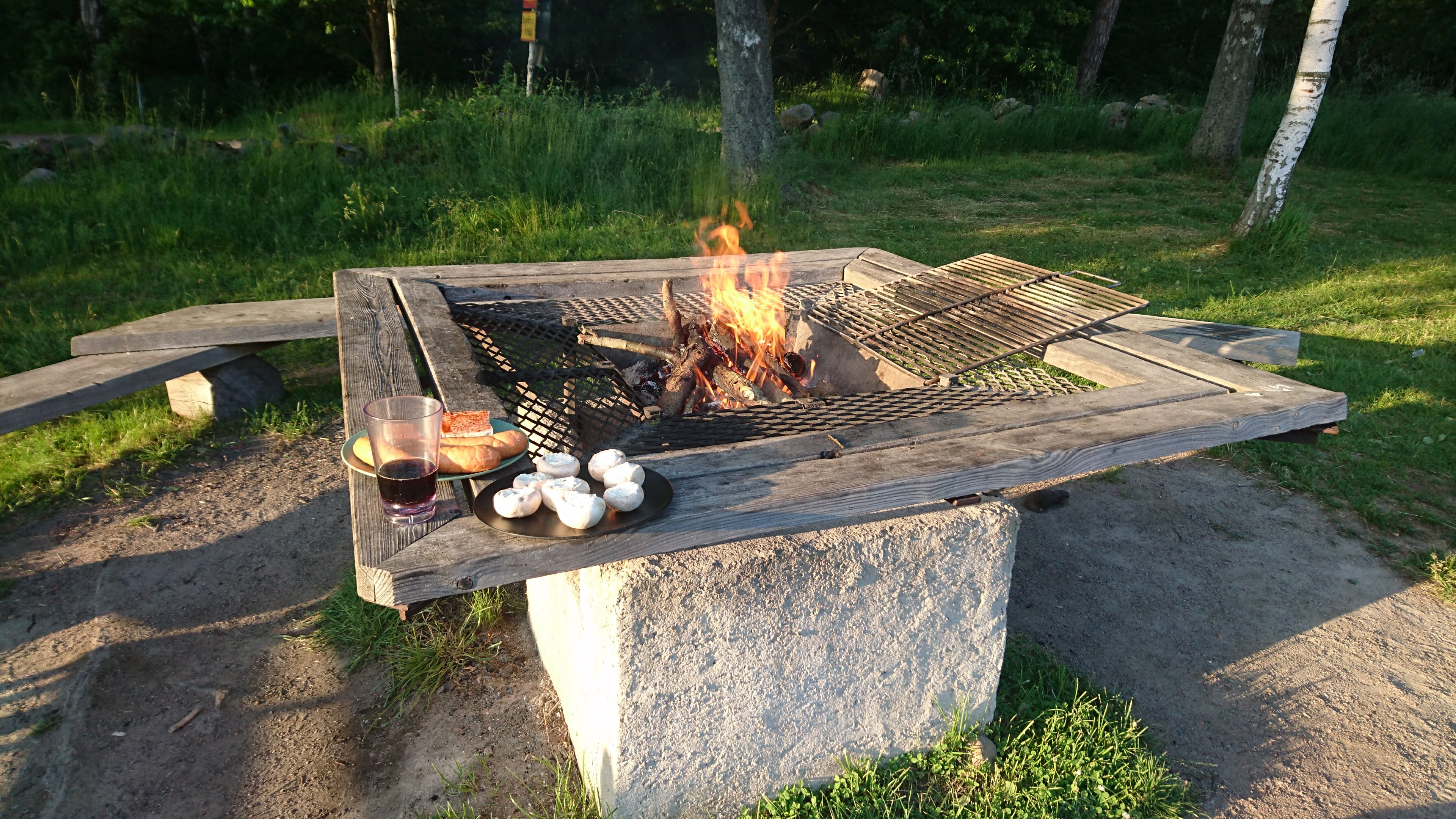 Insgesamt sind wir 3 Tage dort. Am Abend vom zweiten Klettertag nutzen wir eine der super eingerichteten Grillstellen um „schwedische Cervelats“, gefüllte Pilze und gegrillten Tofu zu machen. Um 22 Uhr traben wir zu den Klippen um den Sonnenuntergang über dem Meer zu beobachten. Schööön!