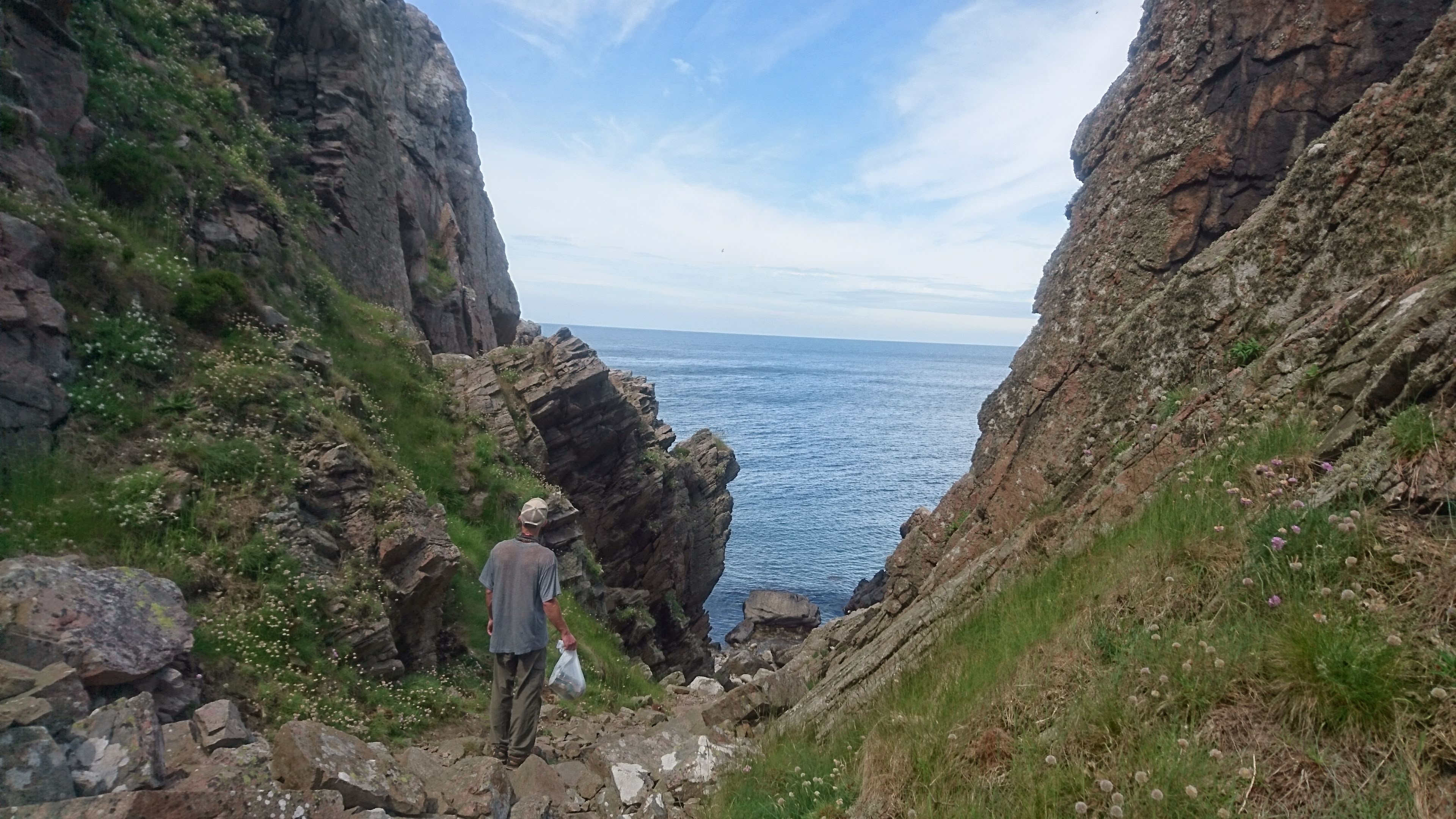 Zum Klettern erwerben wir im kleinen Museum einen Kletterführer für ganze 25kr (für Euro :10 rechnen, etwa)! Dieser bringt uns an schöne Spots direkt am Meer. Hier wird vor allem traditionell geklettert und man kann froh sein, wenn es einen Stand hat. Da man meist problemlos nach oben wandern kann, werden die Routen unterhalb eines Standes dementsprechend viel im Toprope geklettert. So ganz erschliesst sich uns dieses Konzept noch nicht; ohne die Möglichkeit zum Sportklettern müssen Anfänger sogleich vom Toprope aufs Trad-Klettern umsteigen…