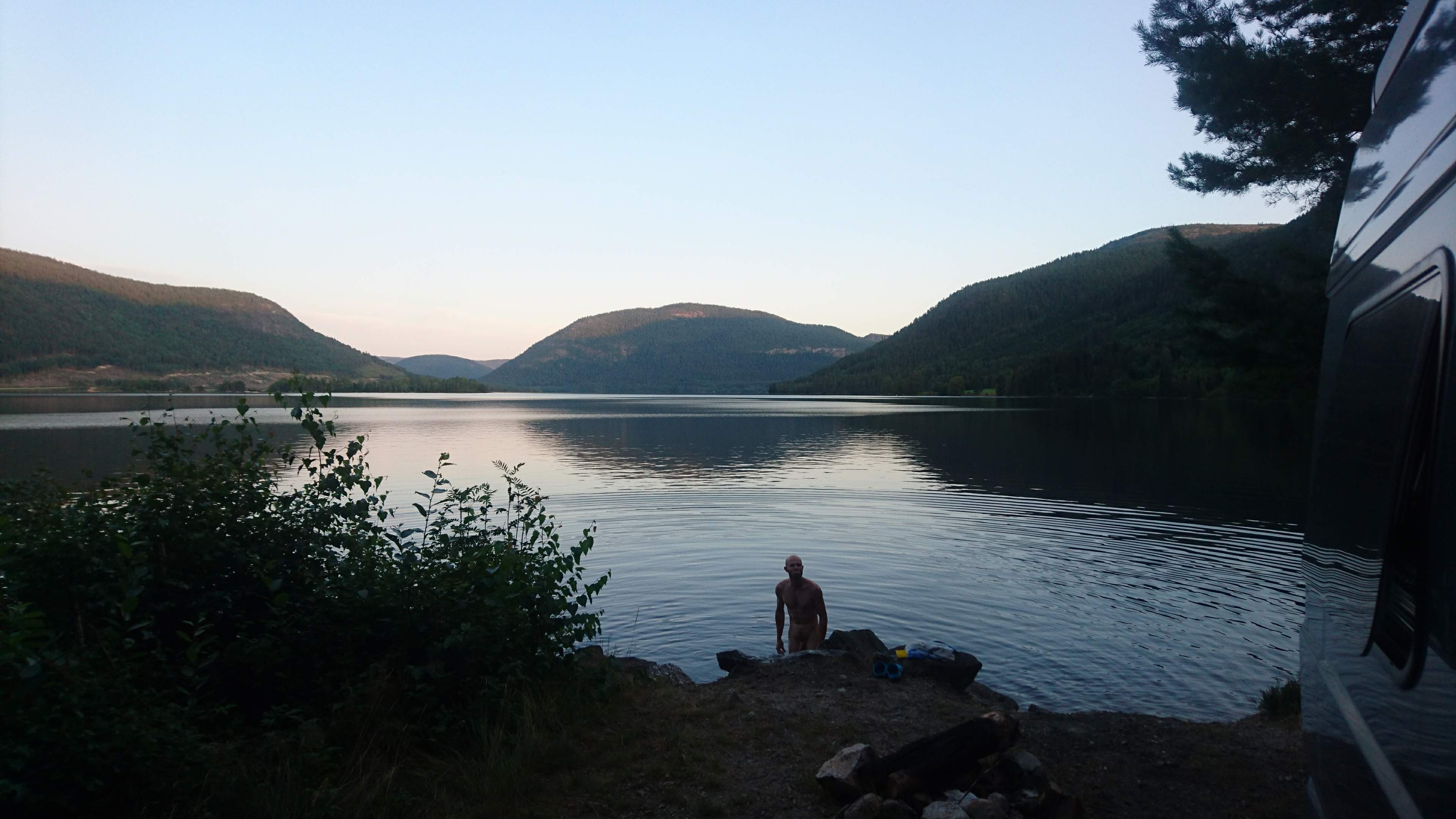 So, nach unserem Bigwall Abenteuer (ihr erinnert euch?) brauchten wir mal was anderes, zum Beispiel kleiner Walls. Und natürlich ein paar easy Tage. Also haben wir uns aufgemacht, den Nisser fast zu Umrunden. Der See am Fusse des Haegefjells (fast) ist wahrscheinlich einer der schönsten die wir bis jetzt gesehen haben, riesen gross, Sandstrände, kein salziges Wasser, warm und viele schöne Ort zum stehen ringsum. Hier konnten wir unseren Pausentag mit Ausschlafen, baden im See, Grillen und ein wenig Autofahren gut durchbringen.