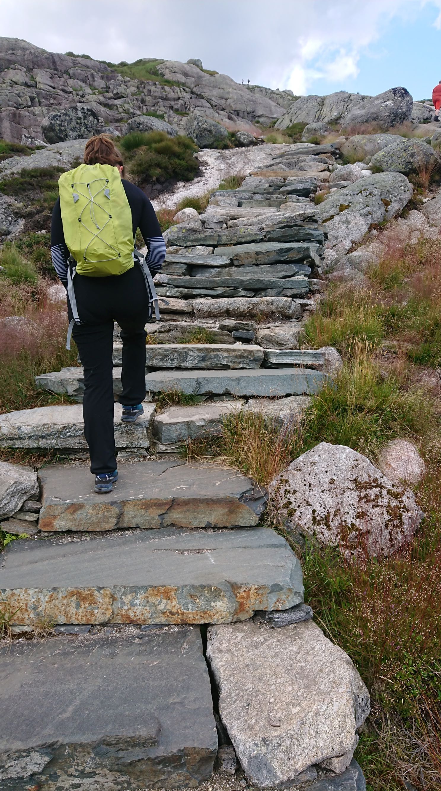 Die Wanderung zum Kjeragbolten wird als „anspruchsvolle Tour“ angepriesen; 10 km, ca. 800 m Höhenunterschied, Wanderzeit 6-10 h. Sie ist eines der grossen Highlights von Südnorwegen und wird deshalb auch von einigen Touristen besucht – wir schliessen uns an.