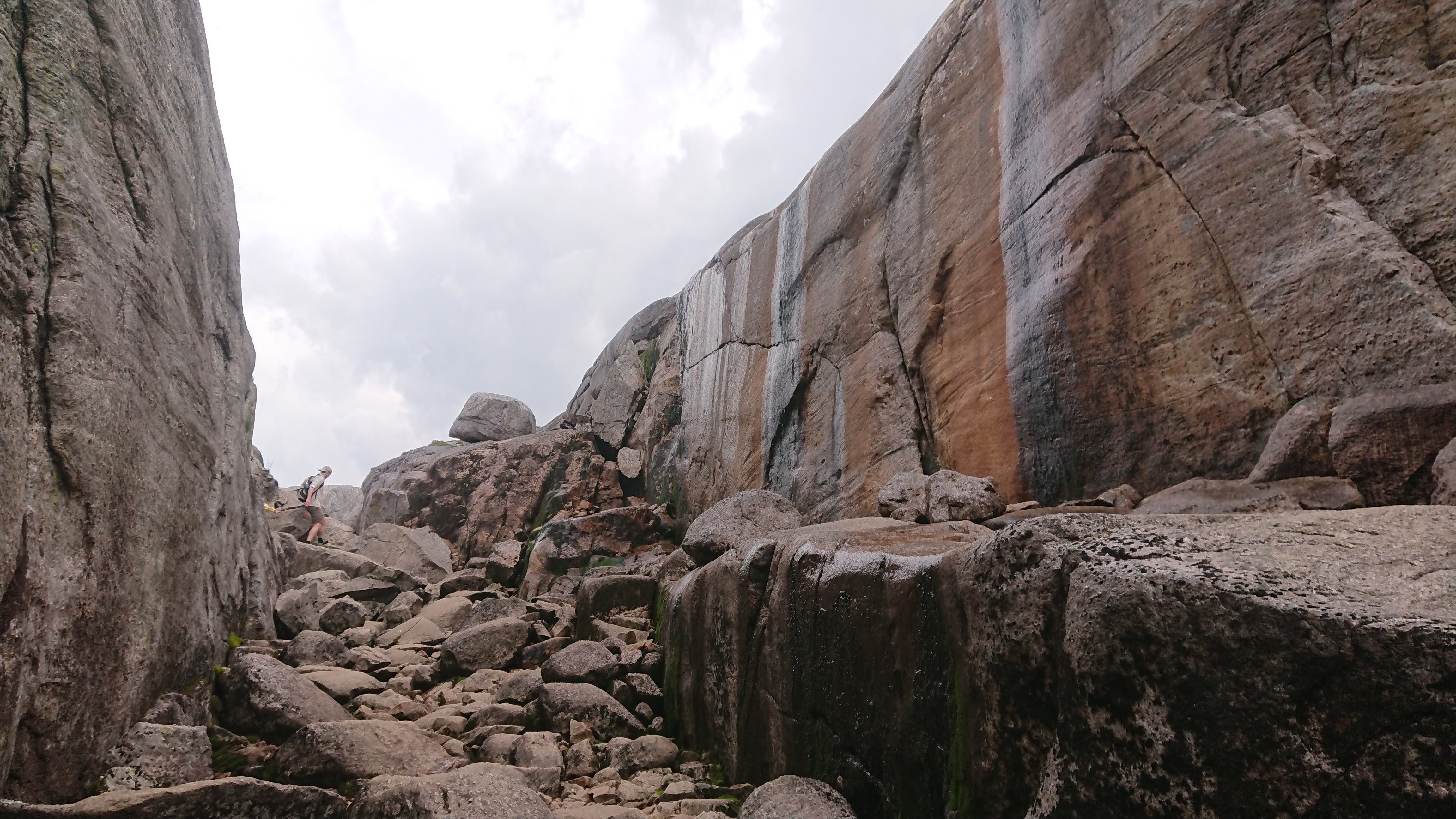 Obwohl einige Wanderer unterwegs zu dem eingeklemmten Felsbrocken sind, kann man gut für sich sein. Der Weg führt über gigantische Steinplatten und wird nur selten kanalisiert, etwa um einige Höhenmeter über eine Treppe zu überwinden.