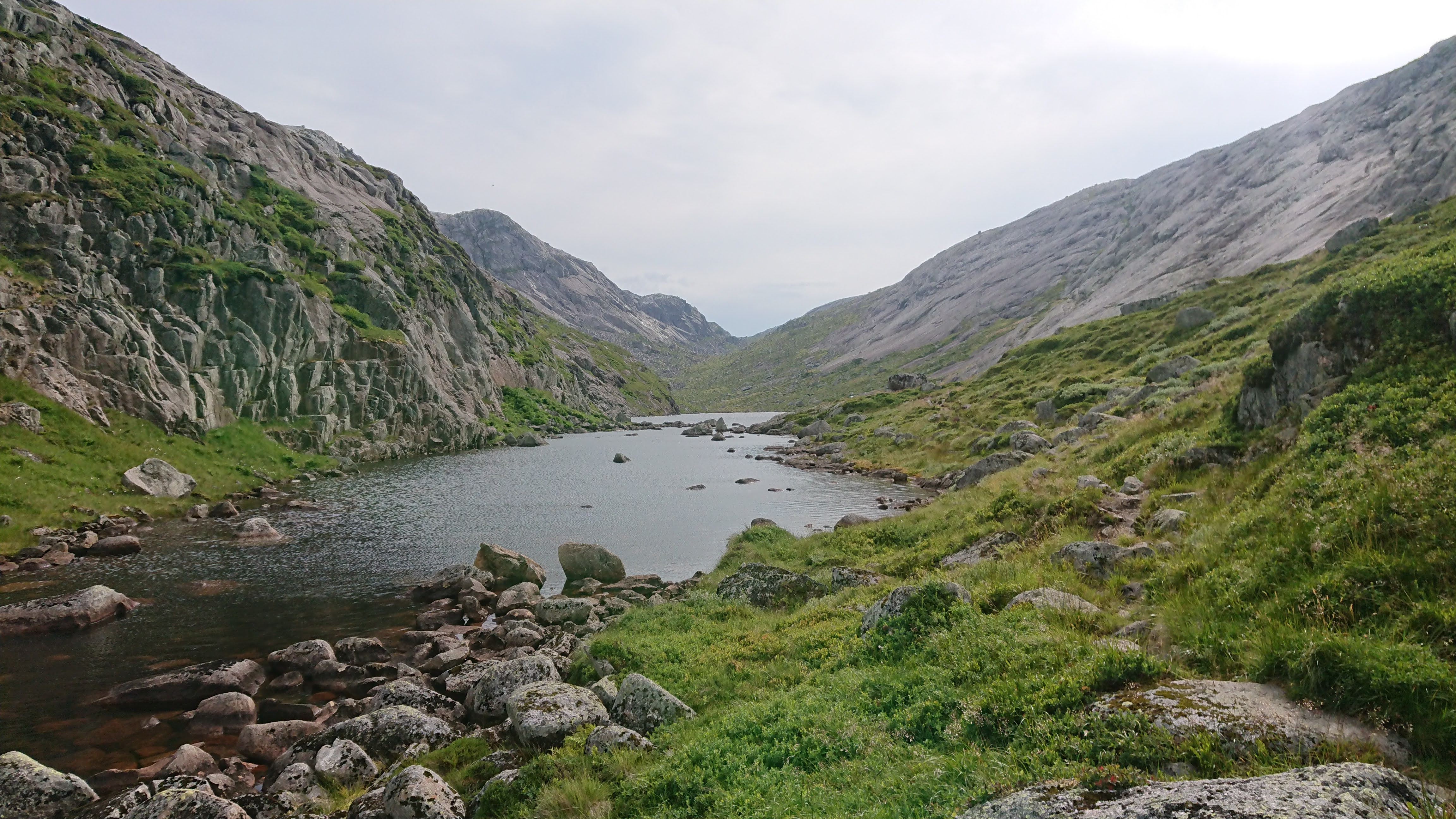 Für den Rückweg wählen wir einen kleinen Umweg über den Gipfel, wo ein eisiger Wind geht, vorbei an einem Gletschersee wo wir es uns trotz gemässigter Temperatur nicht nehmen lassen die Füsse zu baden, hinein in ein Seitental mit einer vergleichsweise besänftigender Natur. Durch das Hochmoor führt der Weg zurück, zurück zum Camper.