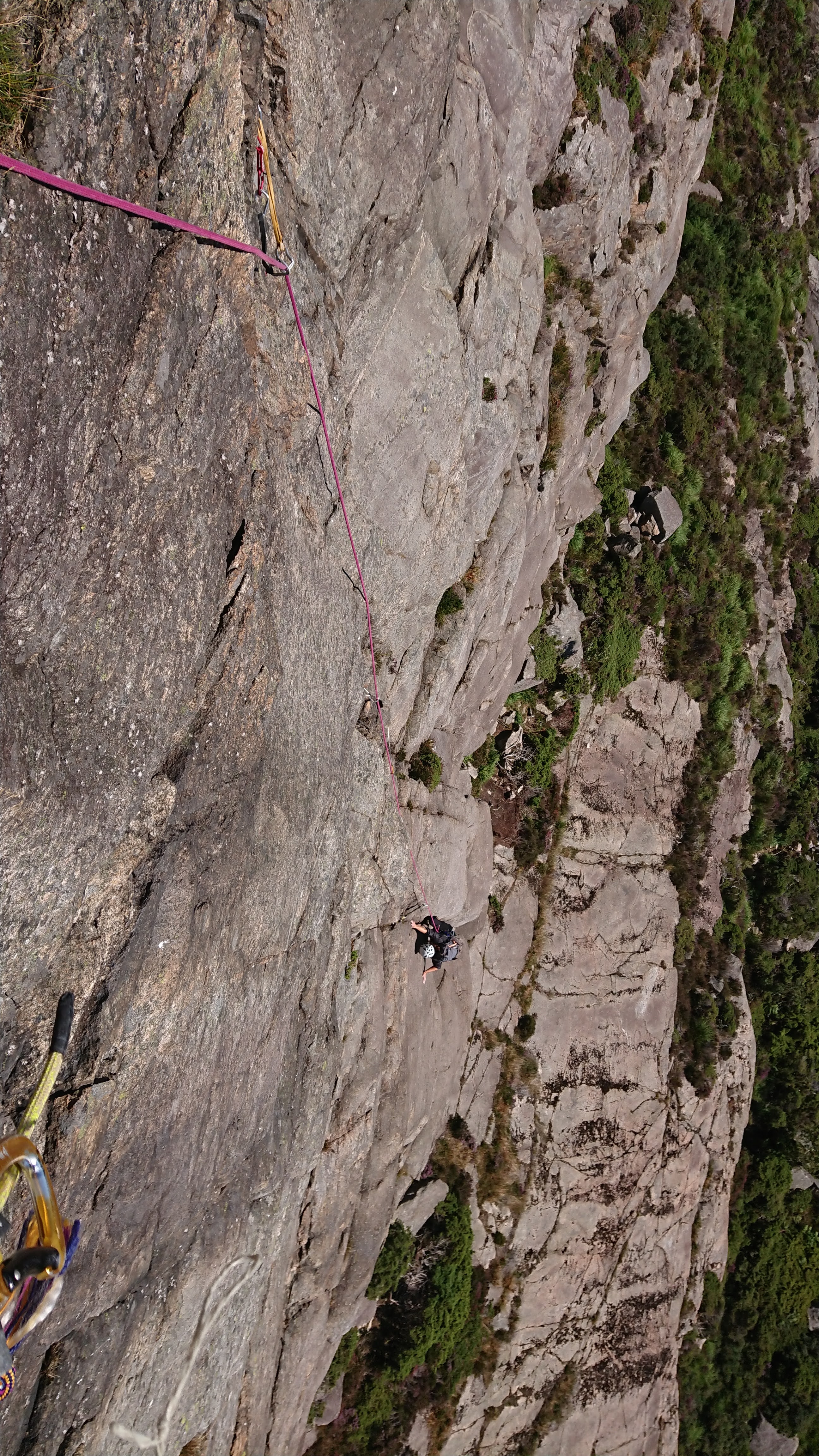Es scheint wohl nicht unser Tag zu sein – schon nach einigen Metern wird die Absicherbarkeit deutlich schwerer, resp. unmöglich für eine Weile. Wir sind beide schon genügend demotiviert und beschliessen das Klettern für heute gut sein zu lassen.
