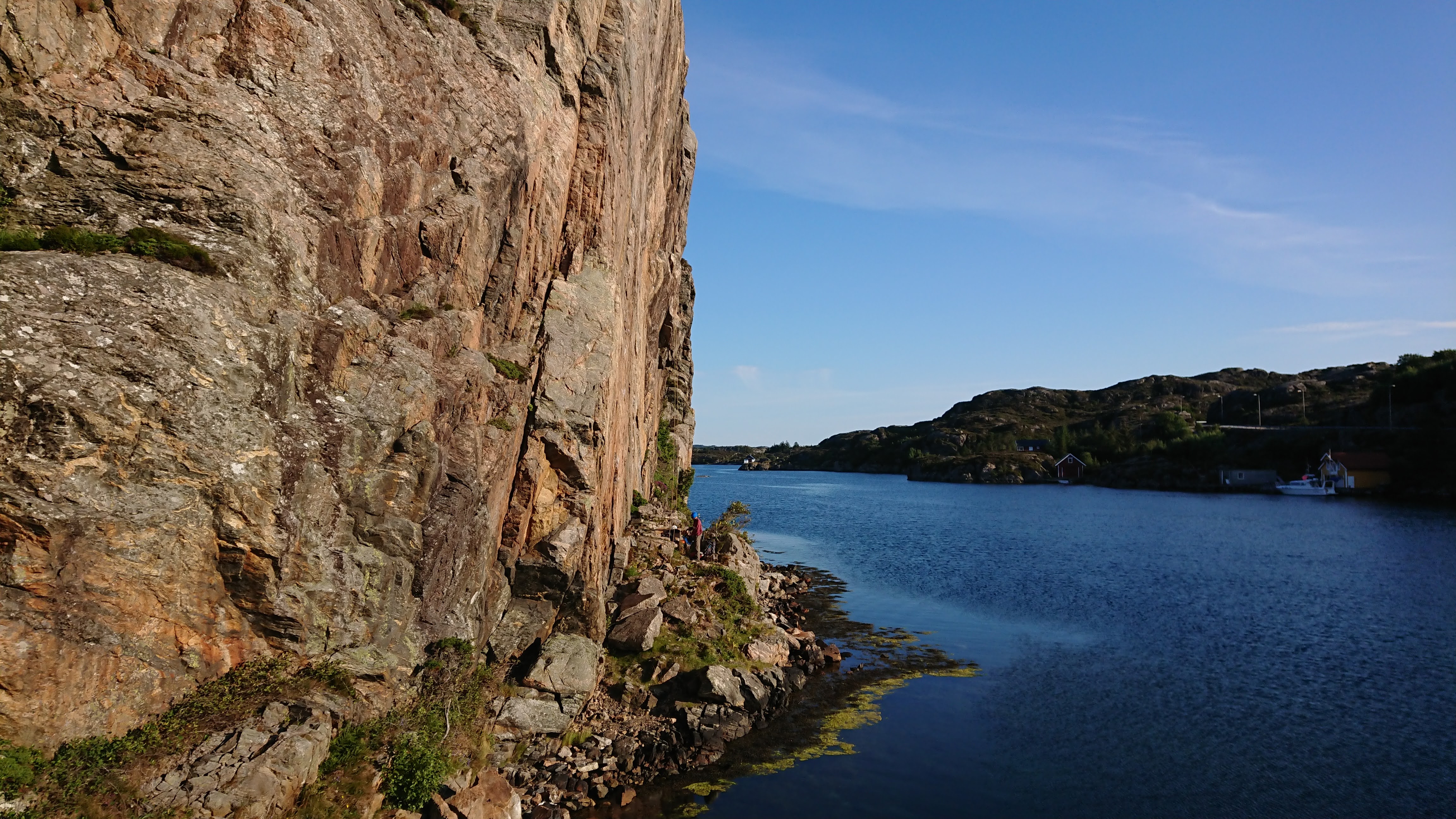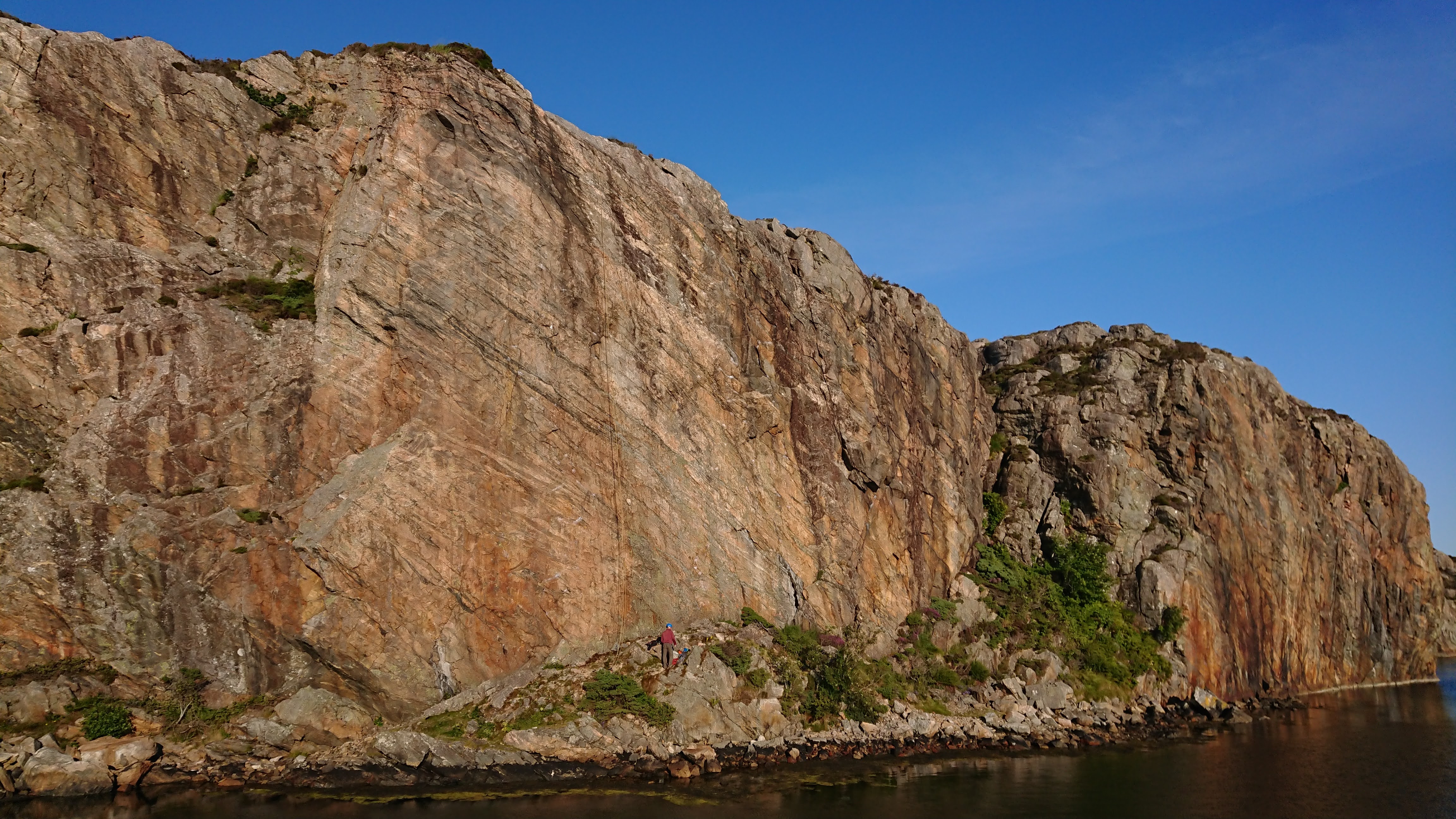 Den letzten Tag vor der Arbeit verbringen wir in «Syltoy», diesmal zum Sportklettern. Für den Zustieg an die Felswand direkt am Fjord brauchen wir ganze 30 s – 1 min. Die Kletterei ist teils kräftig, teils technisch, die Absicherung perfekt. Wunderbar zum Ausgleich der Tradkletterei und genau das Richtige um in schwere Routen einzusteigen. Schade bleibt es bei dem einen Tag!